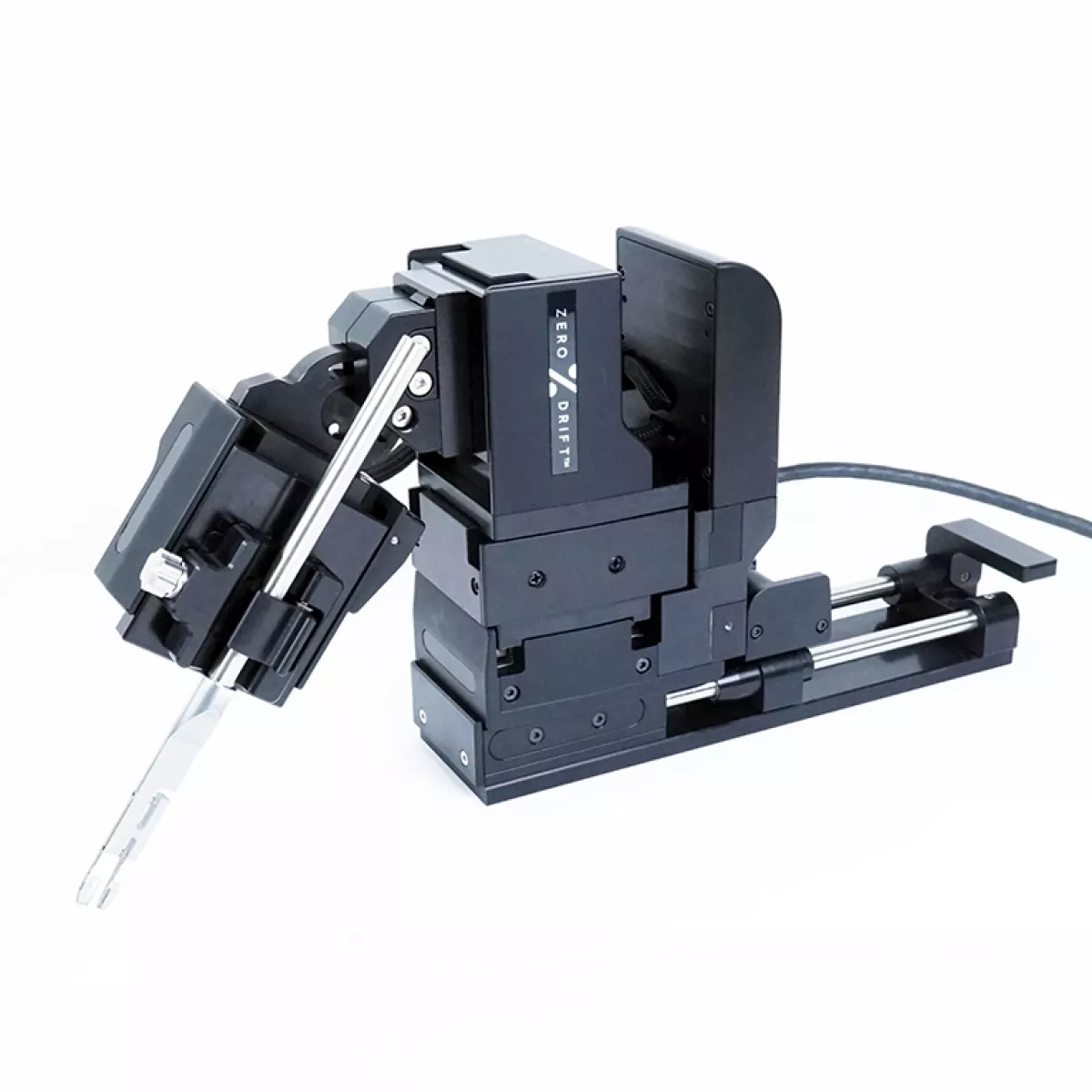 The uMp-4 SENSAPEX 4-axis piezoelectric micromanipulator is particularly suitable for stereotaxy thanks to its 4th physical axis with vertical angle capability (approach angle from 0 to 90°) in addition to all the other features of the uMp-3 micromanipulator.