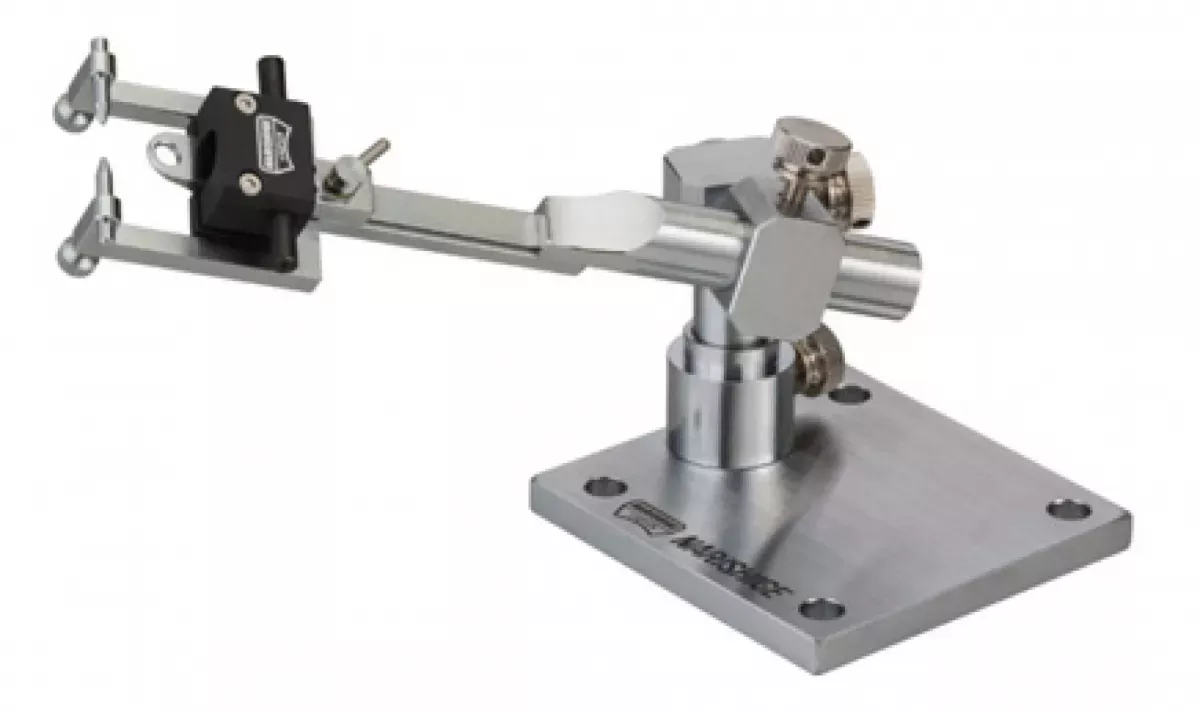 Le SGM-4 est un porte-tête conçu pour immobiliser la tête d’une souris de manière stable pendant l’anesthésie. Sa fixation en trois points, au niveau de la bouche, du nez et des oreilles, assure une stabilité optimale. La tourelle amovible permet l’utilisation d’un masque anesthésique, et le porte-tête peut être attaché à une barre de maintien pour ajuster l’angle jusqu’à 360°. Sa conception compacte le rend compatible avec une platine de microscope et permet une grande polyvalence d’utilisation. Le porte-tête est fourni sans accessoires tels que le masque anesthésique ou le mécanisme de réglage de l’inclinaison.