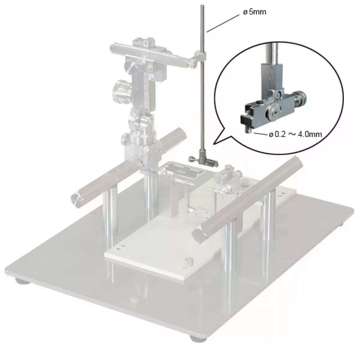 Le SM-15HE est un support conçu pour les micromanipulateurs SM-15 de NARISHIGE. Il permet de fixer solidement des accessoires dont le diamètre varie de 0,2 mm à 4,0 mm. Il est particulièrement adapté pour maintenir des canules ou des embouts de fibre optique de diamètre compris entre 1,25 et 2,5 mm.