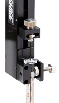 Le microinjecteur stéréotaxique manuel IMS‑4 de Narishige permet à la fois l’injection et la succion. En tournant la molette, l’utilisateur actionne le piston de la seringue en verre, avec un mouvement lent et précis adapté aux injections intracérébrales. Le système est conçu pour un montage central de la seringue, garantissant sécurité et lisibilité des graduations. Le connecteur de fixation inclus permet une orientation personnalisée sur un micromanipulateur SMM. Idéal pour injections de gros volumes et administration intracérébro-ventriculaire (ICV).
