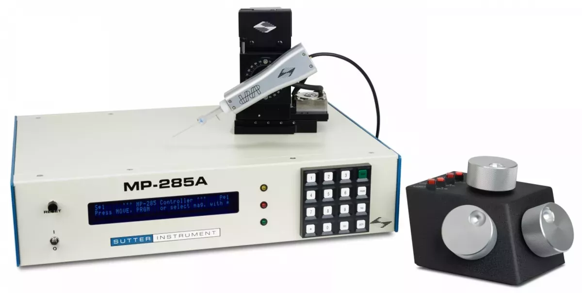 Le MP-285 est un micromanipulateur 3 axes avec 4ème axe diagonal virtuel conçu pour des applications exigeantes comme le Patch Clamp, les enregistrements extracellulaires et intracellulaires, la microinjection et la robotique de précision. Il offre une stabilité exceptionnelle avec une dérive minimale, une résolution sub-micrométrique de 0,2 µm à 40 nm, une vitesse maximale de 2,9 mm/sec et un déplacement motorisé sur 25 mm pour chaque axe. Le 4ème axe permet un positionnement diagonal précis dans les plans X-Z, Y-Z ou X-Y sans besoin de logiciel externe. Le MP-285 inclut des moteurs pas-à-pas sur mesure, des glissières à roulements de précision et des entraînements à vis sans fin pour un contrôle fluide. Les positions sont affichées en continu et peuvent être programmées en séquences robotiques jusqu’à 500 instructions. Le micromanipulateur s’intègre facilement à toute configuration grâce à son design compact et son système universel de montage pour pipettes, micro-électrodes et préamplificateurs.
