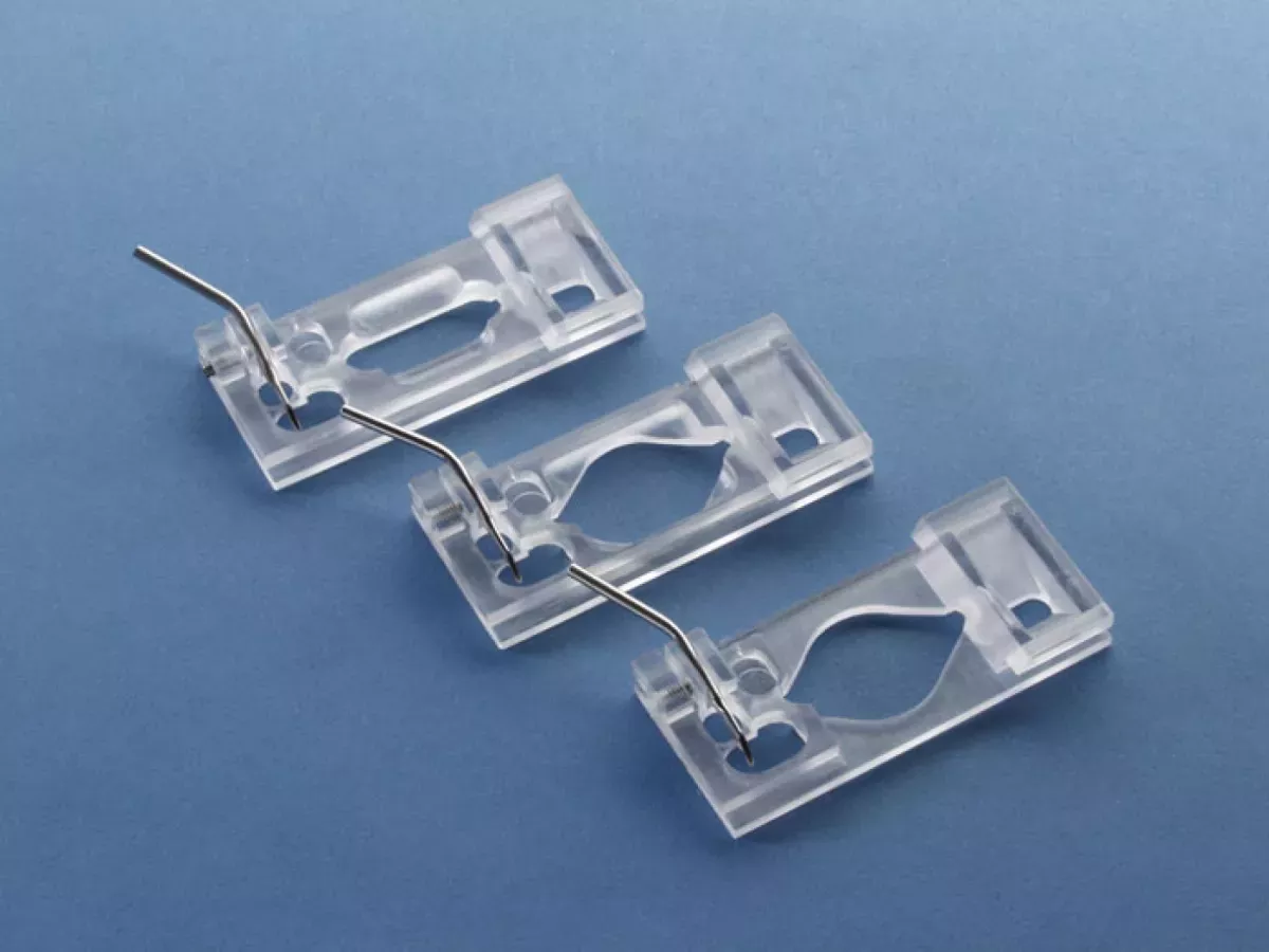 La JG-23 possède une conception en forme de diamant avec parois inclinées, permettant une distribution ultra-silencieuse des solutions et minimisant les vibrations qui pourraient perturber la mise au point optique pendant les enregistrements. Le grand champ d’imagerie offre une visualisation optimale des échantillons biologiques. Le tube d’entrée de perfusion incliné assure un flux stable et silencieux.