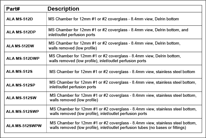 Caractéristiques de la Chambre ronde ALA Scientific Ø 12mm MS-512 ALA Scientific