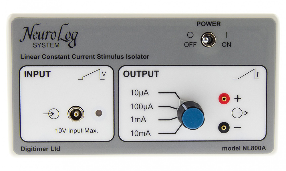 Le NL800A est un isolateur de stimulation à courant constant, alimenté par batterie (types GP23A), développé pour des applications à faible bruit, notamment en électrophysiologie in vitro et in vivo. Il fournit une sortie à haute impédance adaptée à la stimulation via micro‑électrodes ou électrodes grossières. Il est commandé par un module tampon NL510A ou NL512 selon le mode de stimulation désiré.