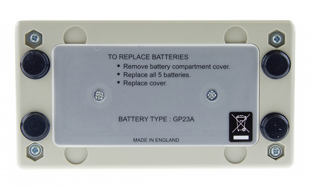 - Alimentation par 5 piles GP23A, avec faible consommation en veille