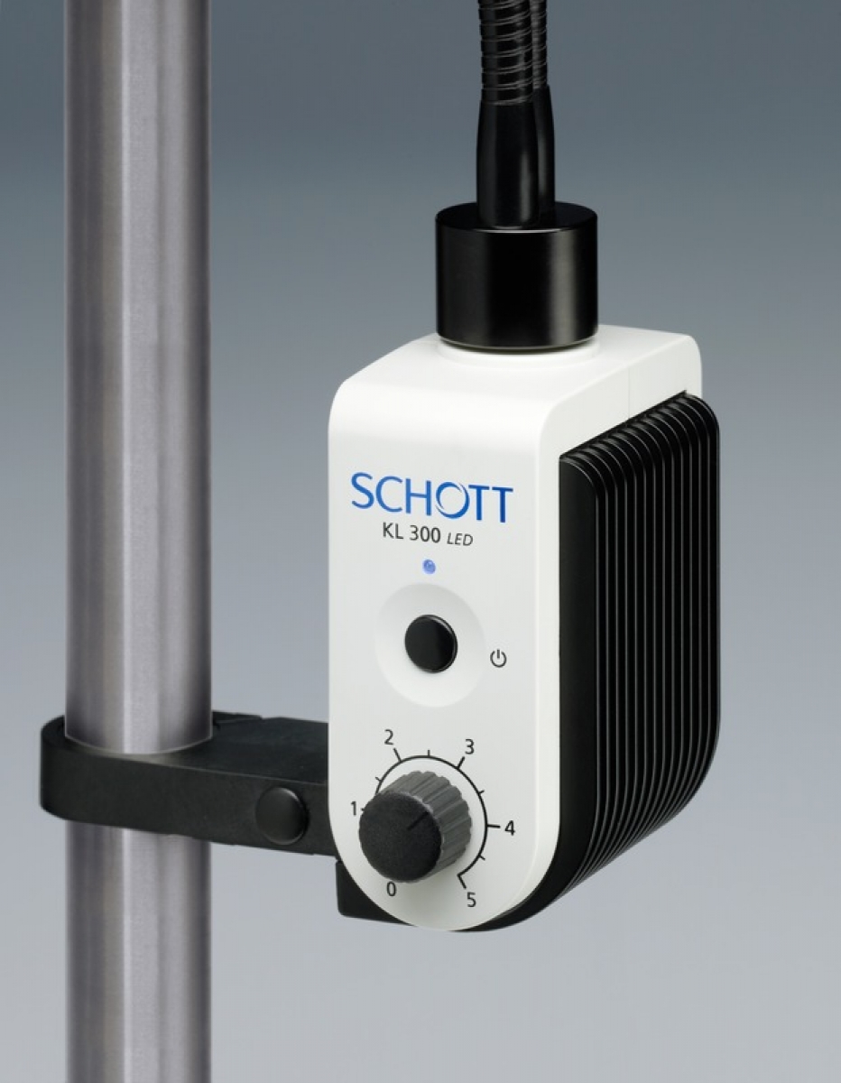 La source de lumière froide KL 300 LED de SCHOTT est une solution compacte et silencieuse spécialement conçue pour les besoins d’inspection de routine et les applications pédagogiques. Avec une luminosité équivalente à une lampe halogène de 30 W et un flux lumineux de 80 lm, elle offre un éclairage homogène adapté aux stéréomicroscopes. Facile à intégrer, elle peut être montée directement sur une colonne ou sur le statif de n’importe quel stéréomicroscope. Son contrôleur d’intensité lumineuse, placé de manière ergonomique, assure un réglage pratique en lien avec la commande de focalisation. Grâce à sa LED durable (≈ 50 000 h), un éclairage stable sans ondulation et une température de couleur constante de 5600 K, la KL 300 LED constitue une solution fiable, économique et silencieuse (sans ventilateur) pour l’imagerie numérique et l’enseignement.