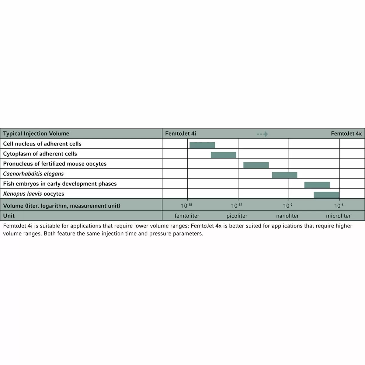 Le FemtoJet 4i est un micro‑injecteur électronique polyvalent, idéal pour les volumes allant du femtolitre au microlitre.