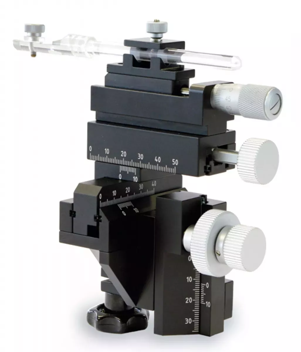 Le micromanipulateur manuel MM 33 Märzhäuser offre un réglage précis sur trois axes (XYZ) avec commandes ergonomiques alignées pour un confort d’utilisation. Il combine un réglage grossier (précision 0,1 mm) et un réglage fin micrométrique (précision 0,01 mm), avec possibilité de bloquer l’axe Z pour éviter toute dérive. Sa conception permet d’installer plusieurs manipulateurs côte à côte, offrant une flexibilité maximale pour les travaux de laboratoire nécessitant des manipulations délicates et reproductibles.