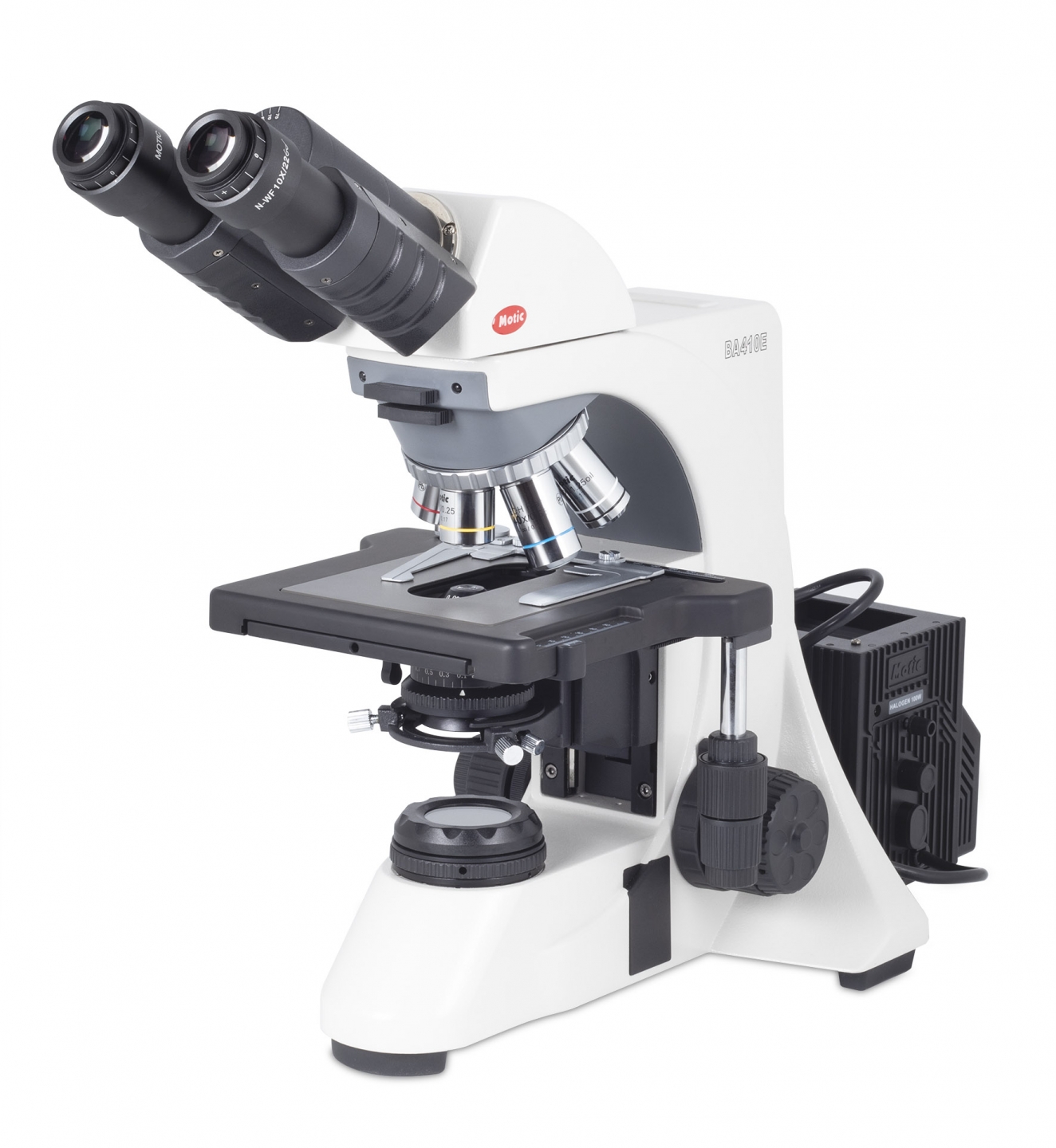Le Motic BA 410 Elite est un microscope polyvalent pour les observations en fond clair, contraste de phase, polarisation et épi-fluorescence. Il dispose d’une tête Siedentopf binoculaire ou trinoculaire inclinée à 30° pivotante à 360°, d’oculaires grand champ réglables et d’une tourelle à 6 objectifs CCIS® UC Plan Achromatique pour une imagerie précise. Sa platine compacte avec commande coaxiale, son condenseur Abbe réglable et son éclairage Quartz Halogène assurent une manipulation confortable et des observations de haute qualité.
